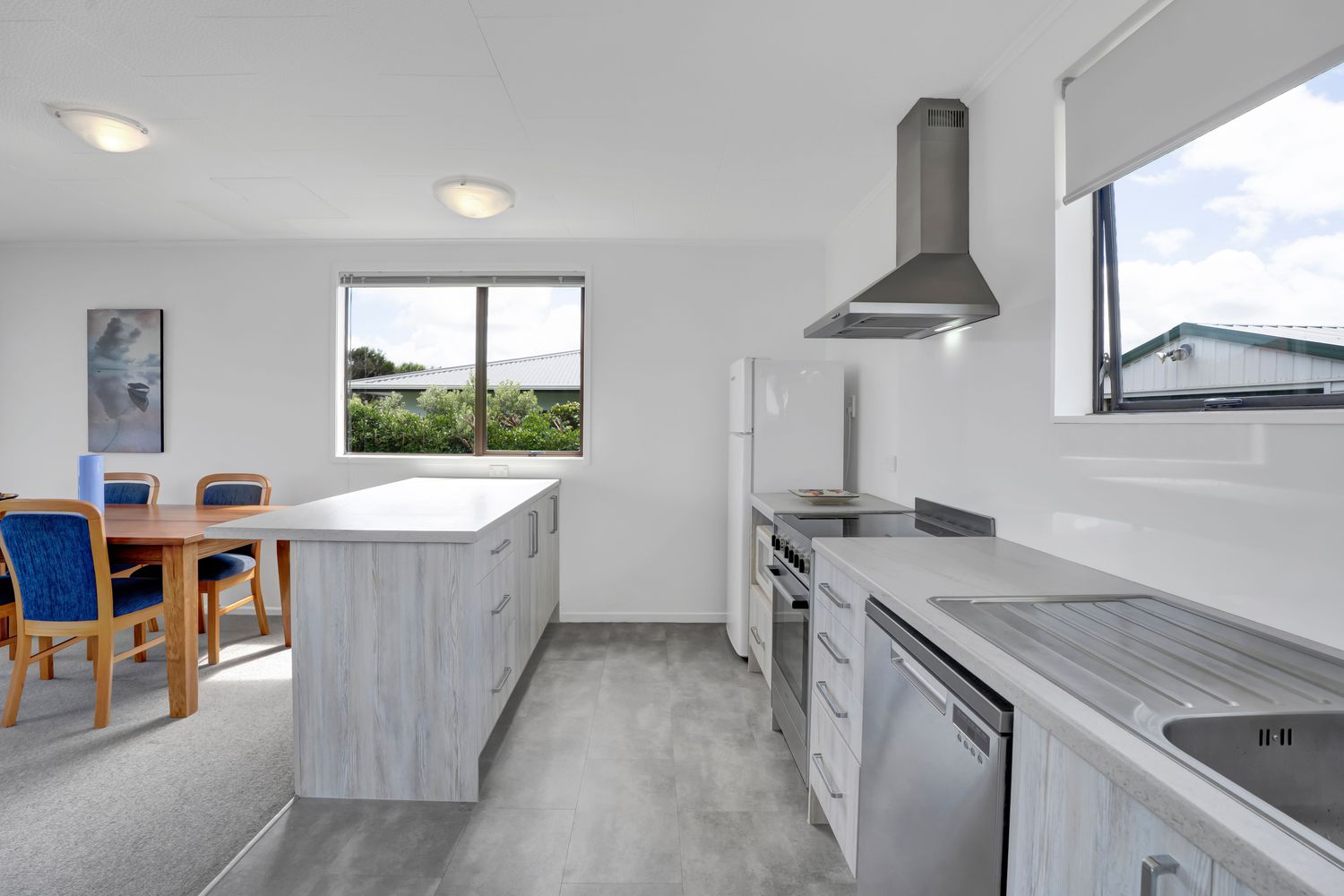 There’s a single powered garage for the boards, the bikes and the chilly bin, and that cul-de-sac location? Quiet, friendly and just a short flip-flop from Middleton Bay.