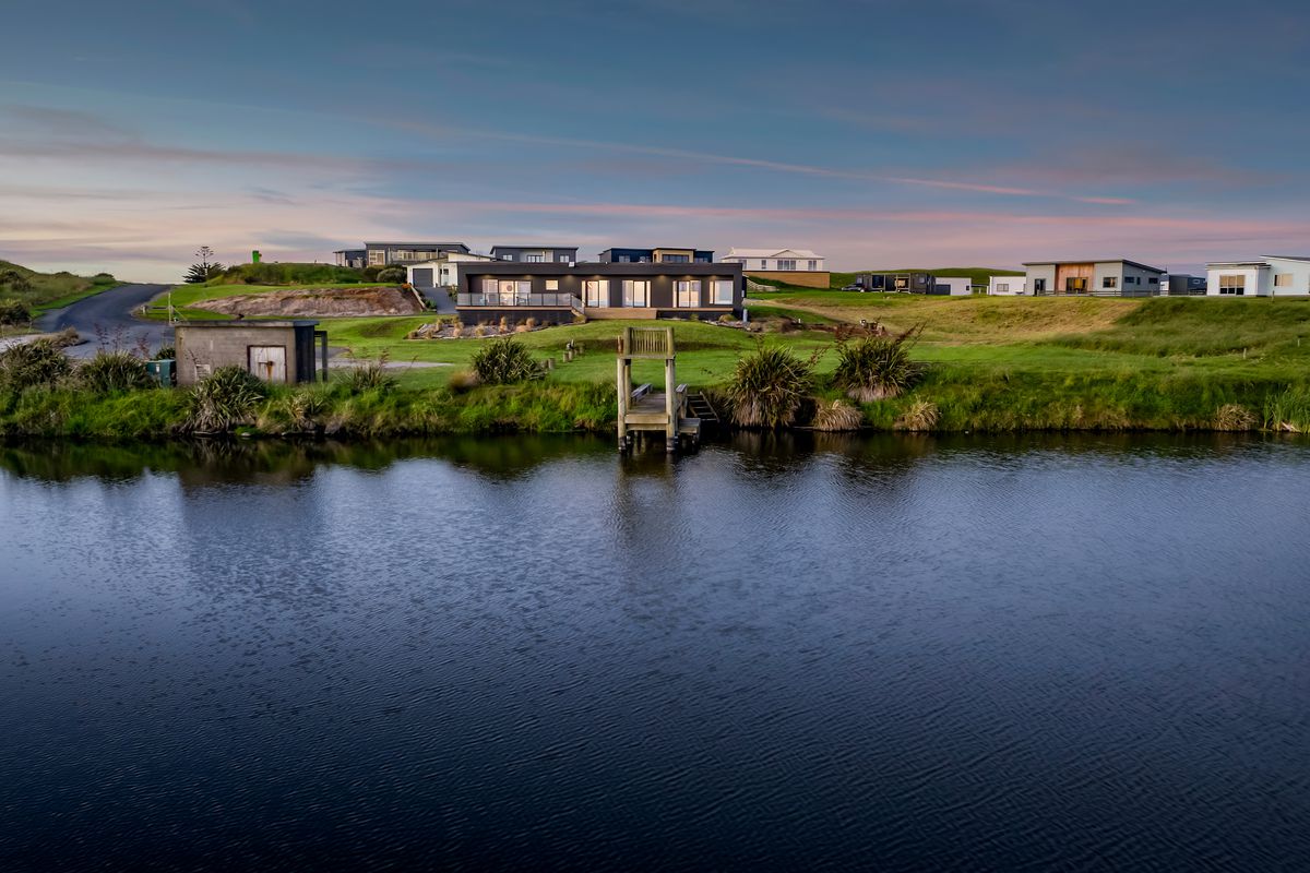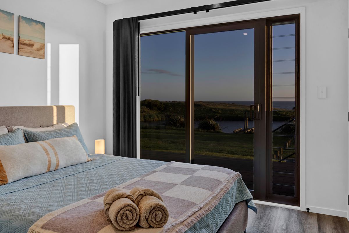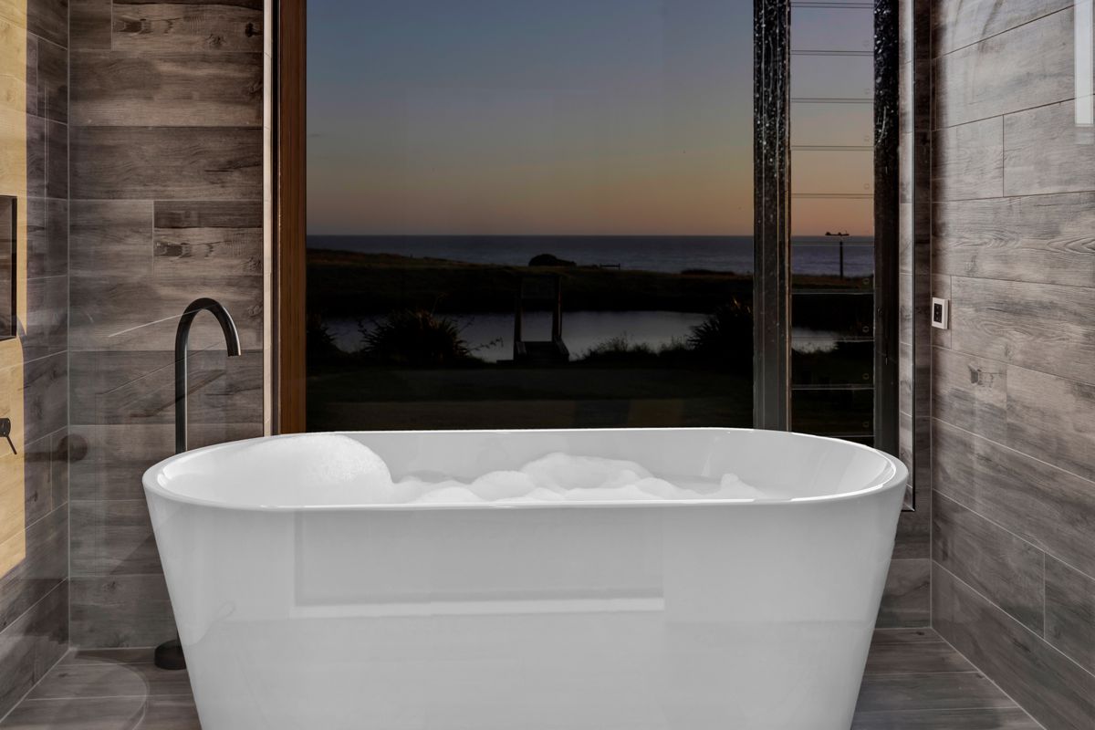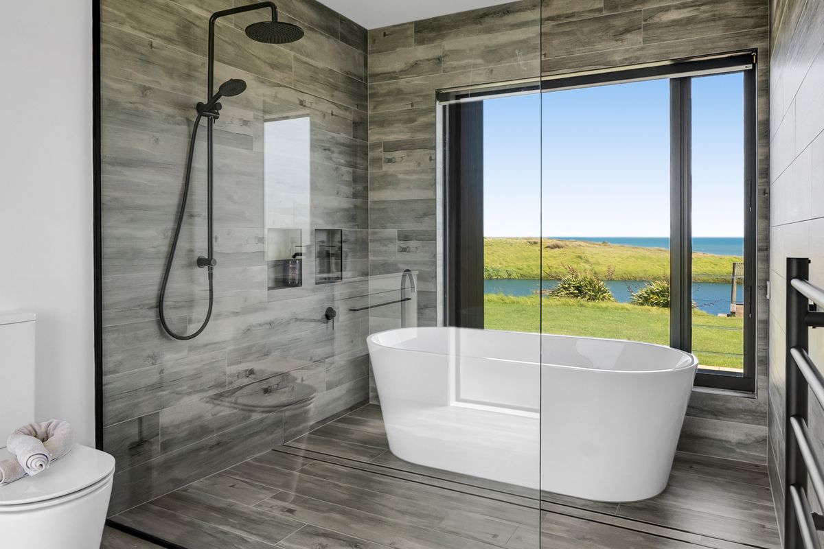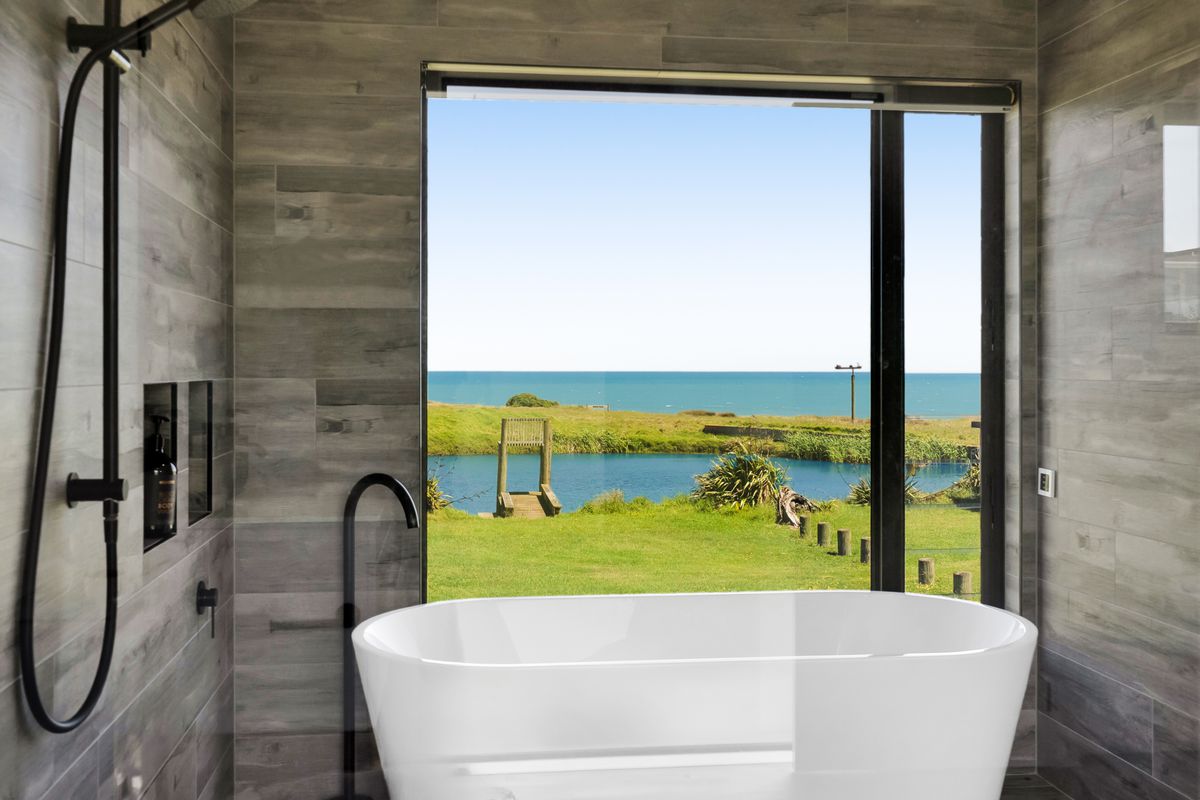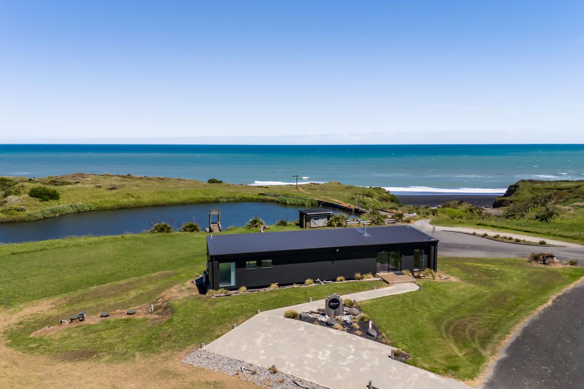Welcome to Waipipi Beach, a hidden coastal gated sanctuary on the untamed shores of South Taranaki, where modern luxury meets raw natural beauty. Tucked between the rhythmic surf of the Tasman Sea and a serene, private lake, this extraordinary home isn’t just a property. It’s an experience, one that begins with sunrise glinting off the water, and ends with golden light bathing a freestanding tub as you soak beneath an endless sky.
