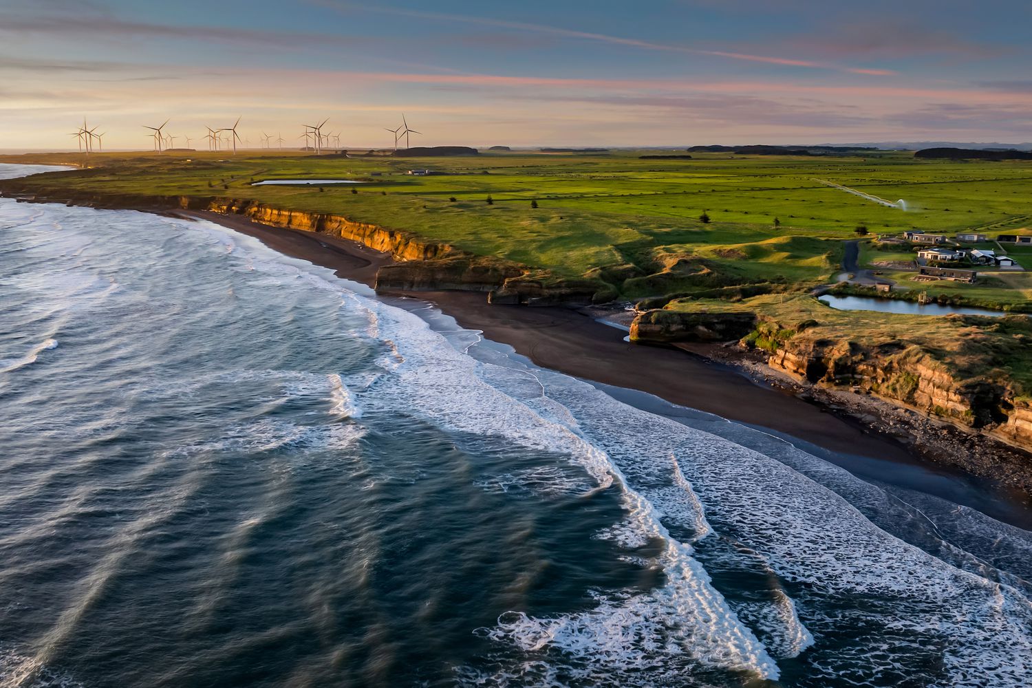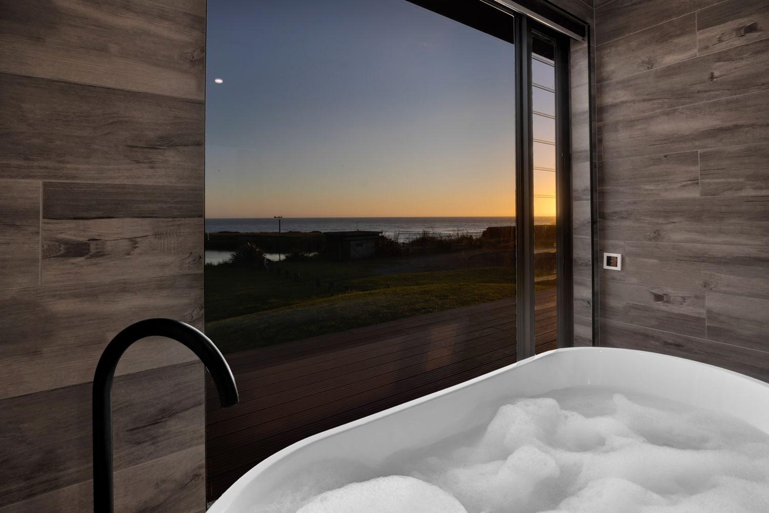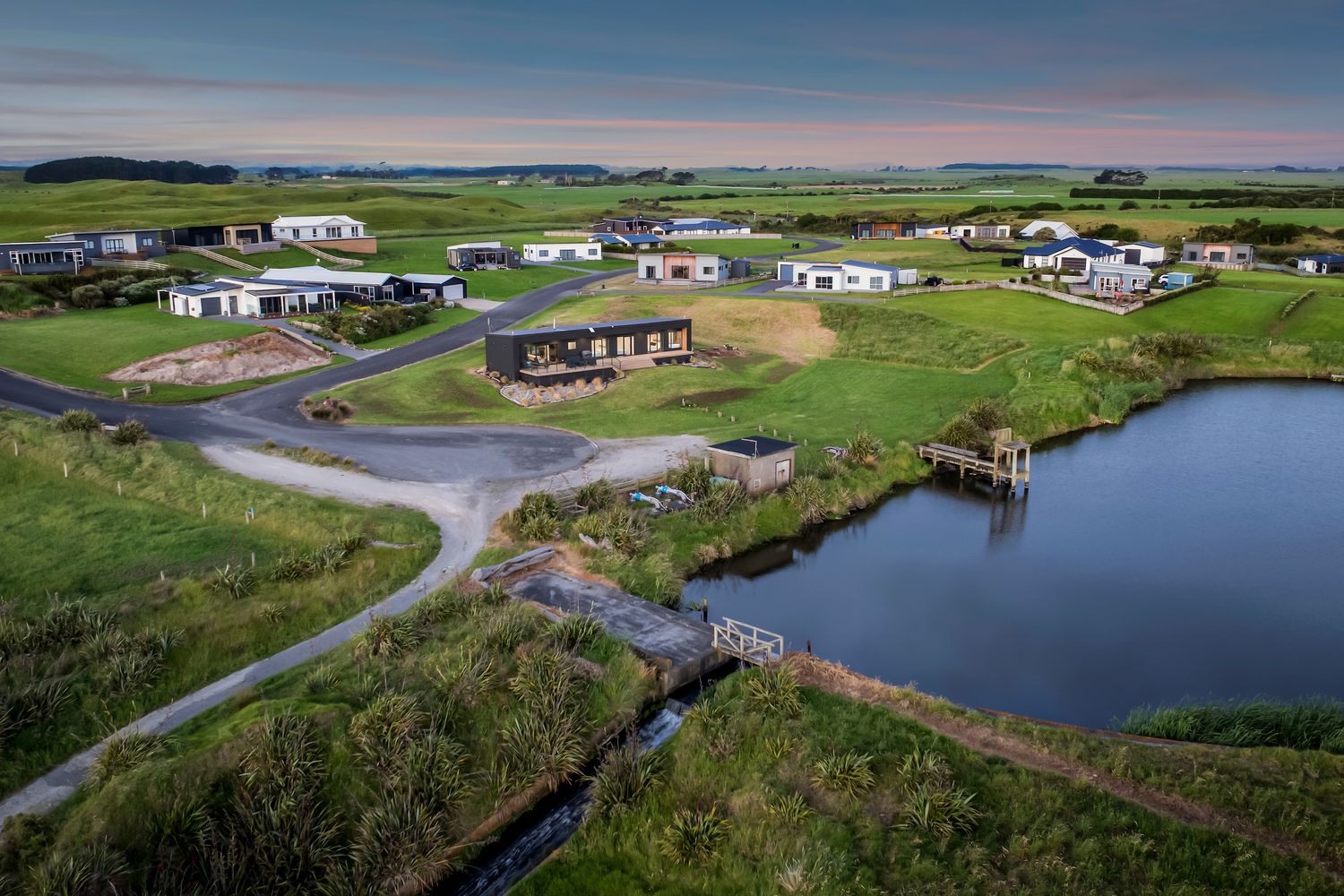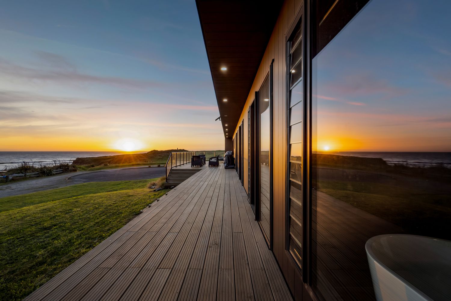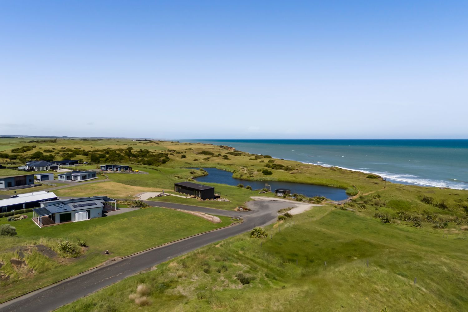 Welcome to Waipipi Beach, a hidden coastal gated sanctuary on the untamed shores of South Taranaki, where modern luxury meets raw natural beauty. Tucked between the rhythmic surf of the Tasman Sea and a serene, private lake, this extraordinary home isn’t just a property. It’s an experience, one that begins with sunrise glinting off the water, and ends with golden light bathing a freestanding tub as you soak beneath an endless sky.
