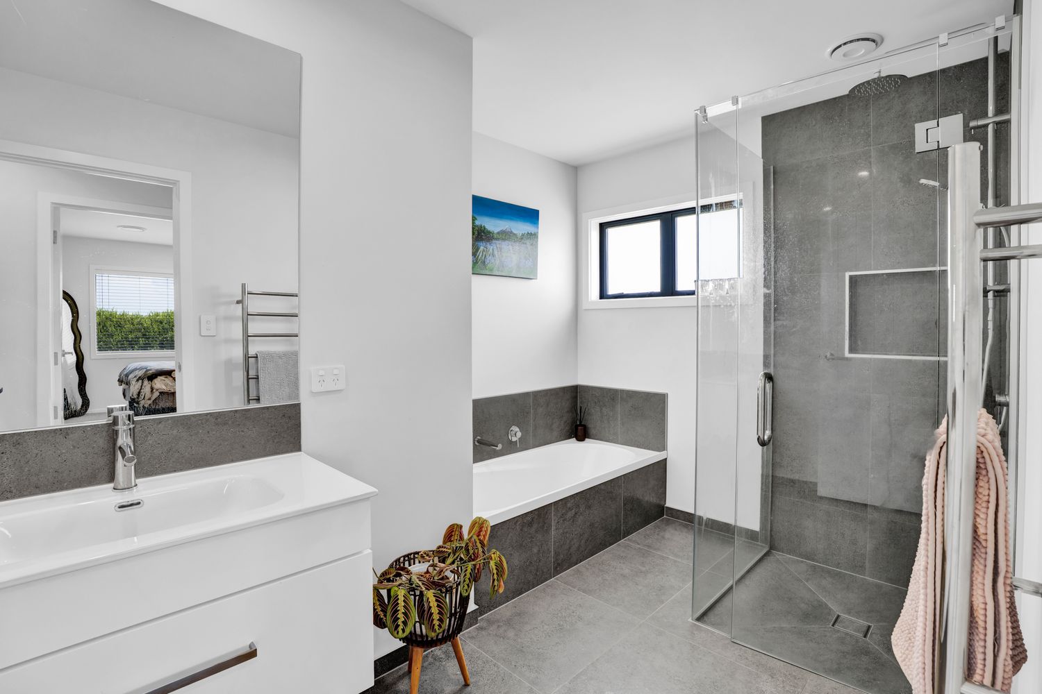 A separate media room sits just off the main living area, offering the ideal retreat for kids, movie nights, or quiet downtime. Accommodation is generous, with three well-proportioned queen bedrooms plus a spacious super-king master suite complete with walk-in wardrobe, ensuite, and ranch slider opening to a private patio, currently home to the owners’ spa pool.