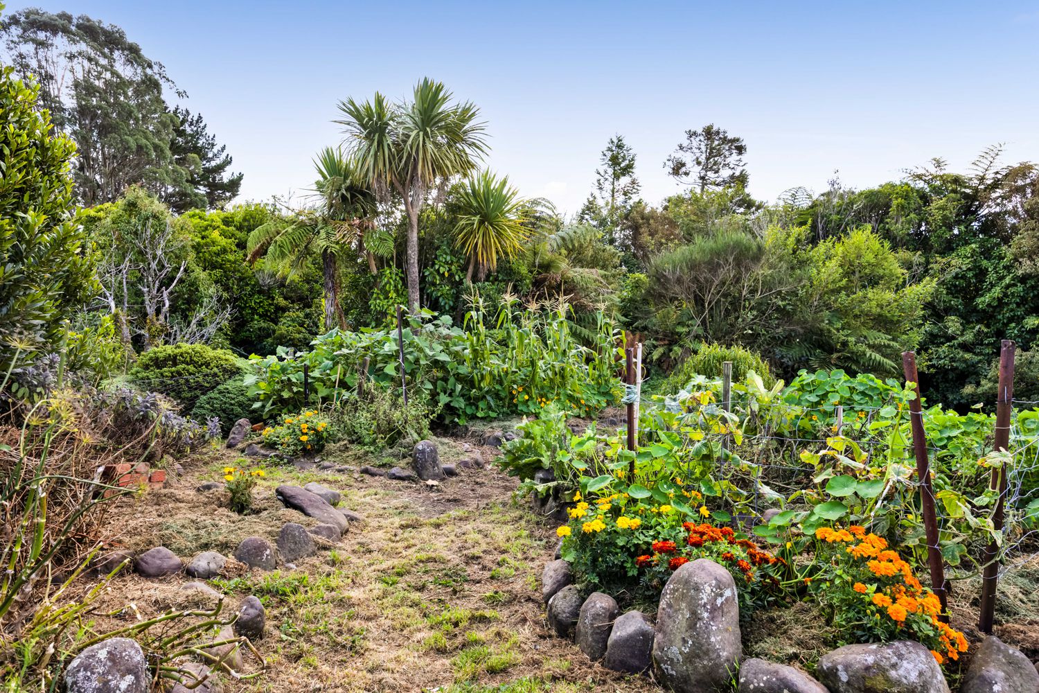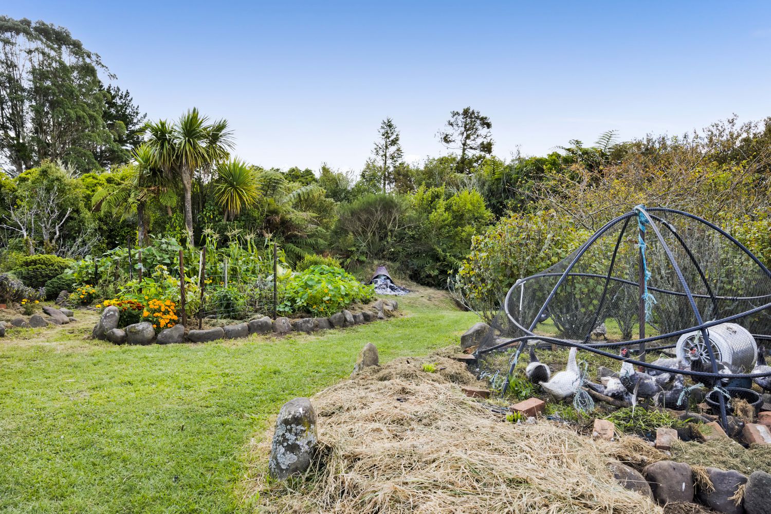 Outdoors, the land has been lovingly developed into a regenerative organic, permaculture environment with low maintenance gardens and food forest.