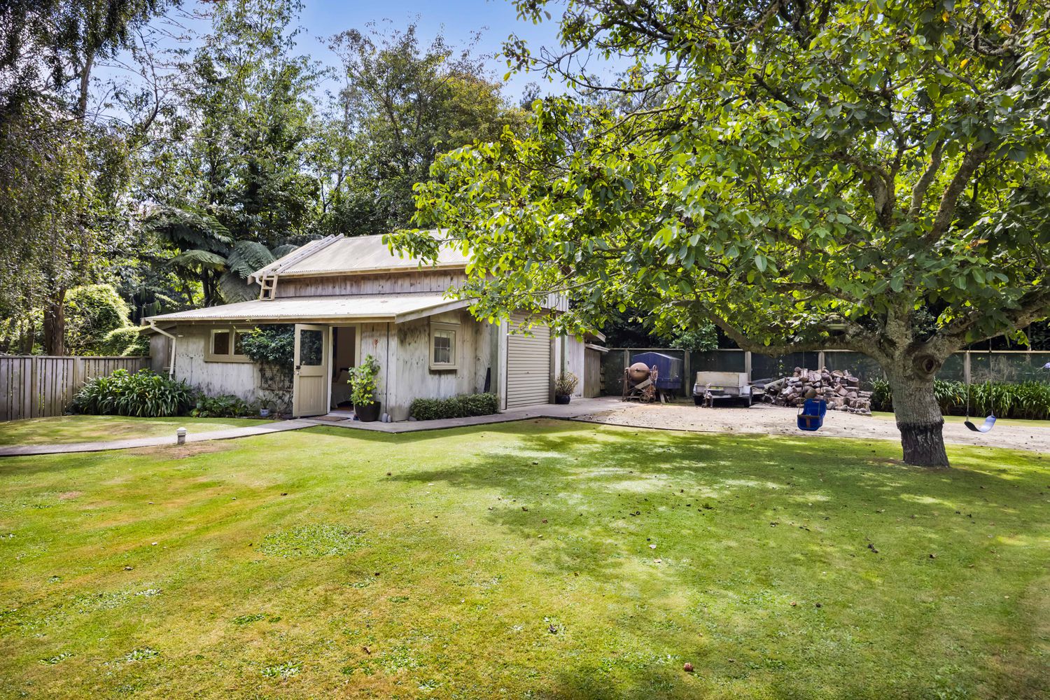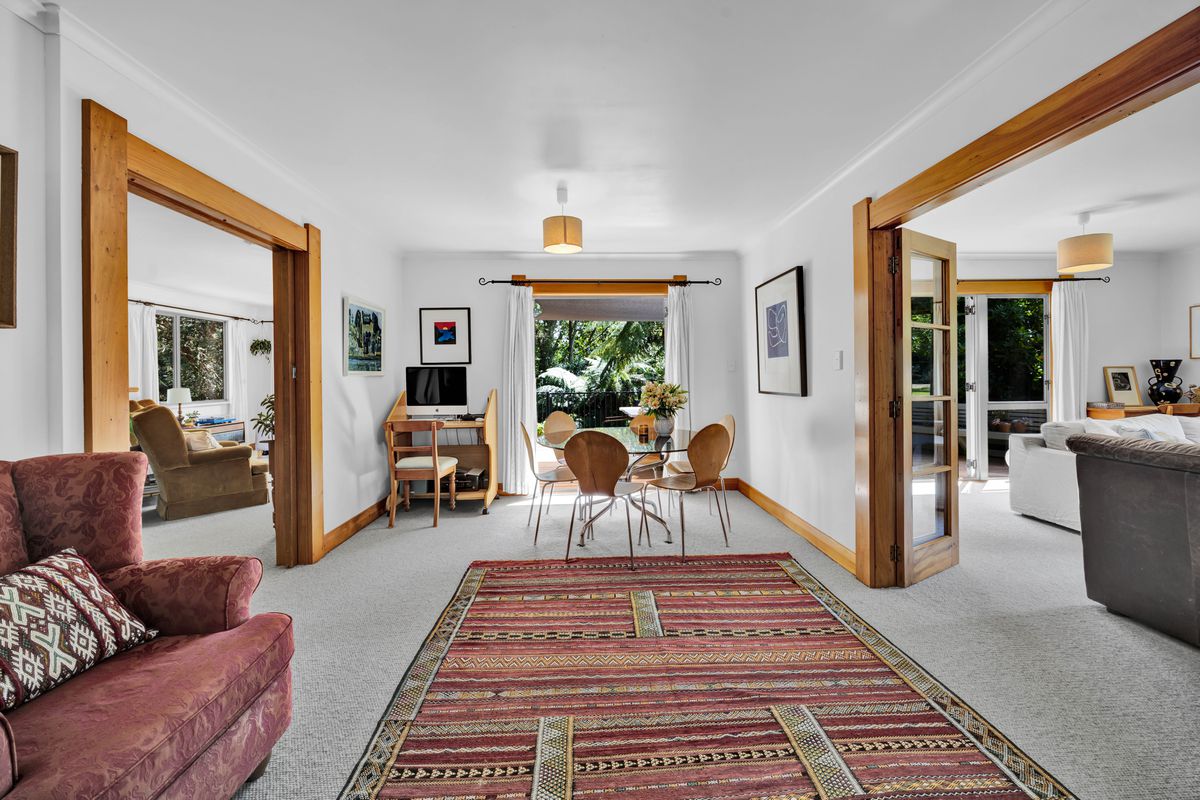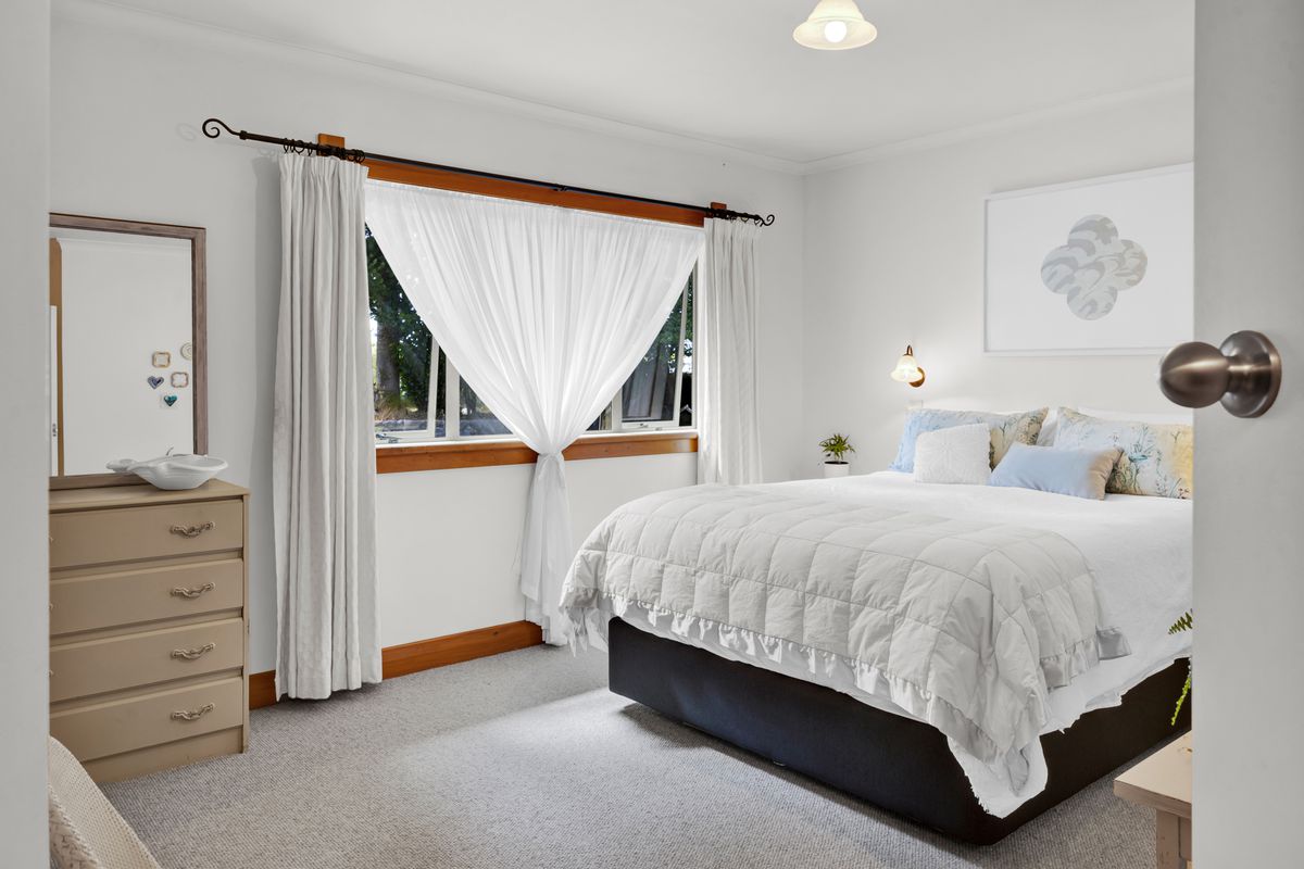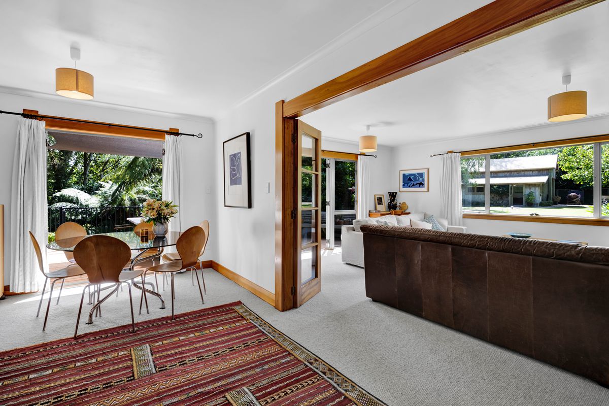Originally constructed in 1965 and relocated from Hawera, this solid weatherboard home has been thoughtfully restored and extended over time, evolving into a generous family home full of character, flexibility, and warmth. And the way it sits within the land - slightly elevated, with that beautiful outlook across the lawn and surrounding trees - it almost feels like a tree house. A place where life naturally centres around space, light, and connection.